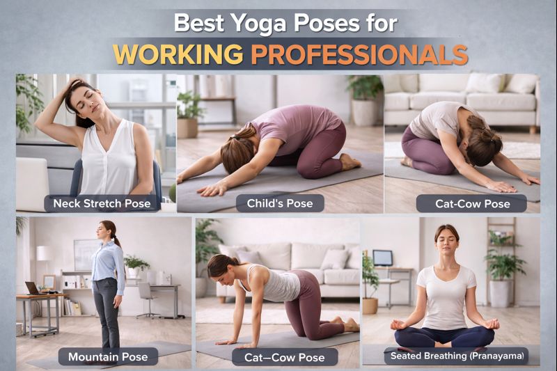 The best yoga poses for working professionals are simple, practical, and easy to maintain. Yoga helps undo the damage caused by long sitting hours while improving mental clarity and stress control. You don’t need long sessions or perfect poses—just regular practice.